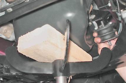5. Приподнимаем домкратом силовой агрегат и снимаем опору.