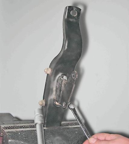 4. Торцовым ключом на 13 мм отворачиваем две гайки крепления опоры, удерживая болты от проворачивания ключом того же размера.