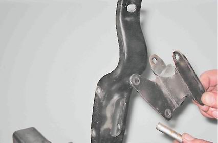 3. Снимаем поперечину коробки передач в сборе с опорой со шпилек задней крышки.