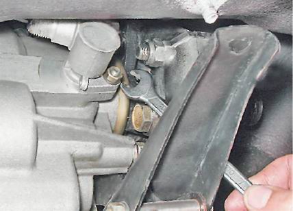 4. Ключом на 10 мм отворачиваем гайку крепления привода спидометра.