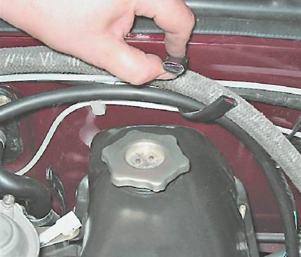 7. Освобождаем из держателя жгут проводов, шланги вакуумного усилителя тормозов и отвода картерных газов.