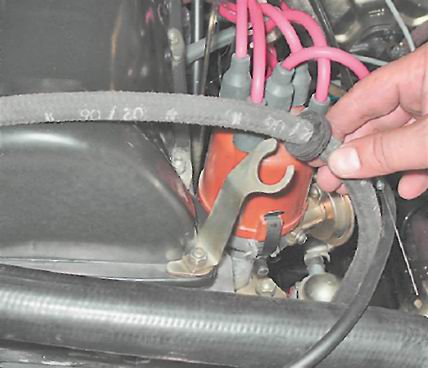 5. Выводим из кронштейна топливный шланг карбюратора.