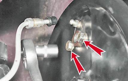 8. Снимаем рабочий цилиндр заднего колеса с тормозного щита.