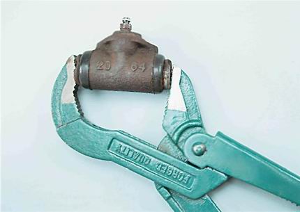 Установка 1. Устанавливаем рабочий цилиндр в обратной последовательности. 2. Перед установкой нового цилиндра раздвижными пассатижами утапливаем его поршни до упора.