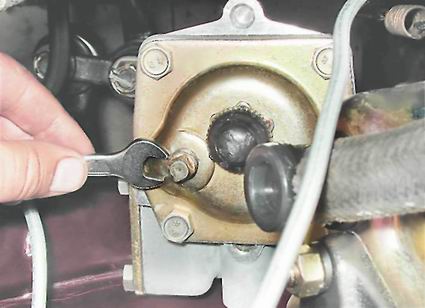2. Рожковым ключом на 8 мм отворачиваем пробку заливного отверстия.