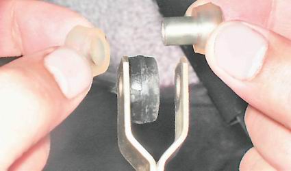 2. Извлекаем втулки из отверстия в проушине рычага.