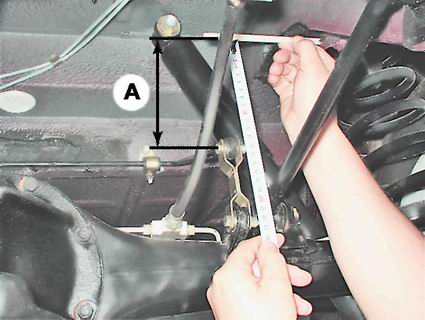 Установка 1. Устанавливаем регулятор давления в обратной последовательности. 2. Перед затягиванием болтов крепления регулятора устанавливаем расстояние А = 140+5 мм от конца рычага регулятора до горизонтальной площадки лонжерона кузова.