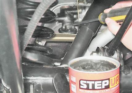 5. В этом положении затягиваем болты крепления регулятора к кронштейну. 6. Наносим пластичную водостойкую смазку на конец рычага и выступающую часть поршня и закладываем 5-6 г этой смазки в резиновый чехол.