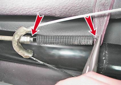 Стояночная тормозная система - разборка и сборкаТросы привода стояночной тормозной системы заменяем при невозможности регулировки из-за их вытягивания или механических повреждений.