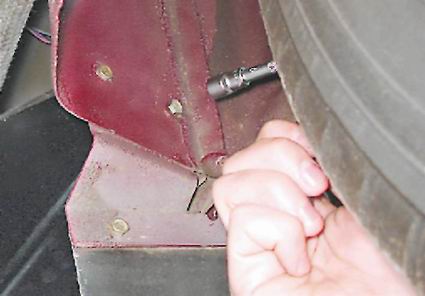 8. Тем же инструментом отворачиваем два болта крепления кожуха к арке заднего колеса.