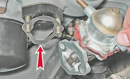5. Снимаем насос со шпилек. Проверяем состояние прокладки и при необходимости заменяем ее. Толщина прокладки - 0,3 мм.
