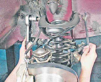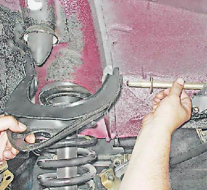 5. Вынимаем ось и снимаем верхний рычаг подвески.