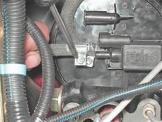 Напряжение на выводе должно быть не меньше 12 B. Если напряжение не поступает на колодку или оно меньше 12 B, - разряжена аккумуляторная батарея, неисправна цепь питания или неисправен ЭБУ. 5. Для проверки самого клапана крестовой отверткой ослабляем затяжку хомута крепления шланга к клапану продувки адсорбера и снимаем шланг.