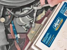 Предупреждение Диаметр положительного вывода батареи больше, чем отрицательного. Нарушение полярности при подсоединении аккумуляторной батареи приведет к выходу из строя электронного оборудования автомобиля.