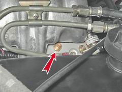 2. Для контроля давления топлива отворачиваем защитный колпачок штуцера, установленного на топливной рампе.