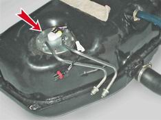 8. Промываем фильтр в ацетоне или подобном растворителе, очищаем жесткой кисточкой и продуваем сжатым воздухом. 9. Для замены датчика указателя уровня топлива освобождаем отверткой фиксатор колодки проводов датчика и насоса. Отсоединяем колодку.