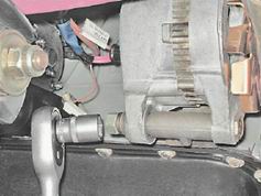 3. Торцовым ключом на 17 мм с карданом и удлинителем отворачиваем гайку крепления генератора к регулировочной планке (ключом на 13 мм для генератора 9412.3701).