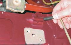 1. Установку капота выполняем в обратной последовательности, ориентируясь по следам от петель на кузове.
