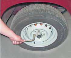 Колесо - заменаДля выполнения операции потребуются: "баллонный" ключ или торцовый ключ на 17 мм, домкрат, противооткатные упоры и твердая опора под домкрат (если машина стоит на рыхлом грунте). Снятие 1. Подготавливаем автомобиль к выполнению операций (см. "Подготовка автомобиля к TO и ремонту"). 2. Подставляем под колесо, находящееся по диагонали от заменяемого, противооткатные упоры. 3. Штатным "баллонным" ключом (или торцовым с головкой на 17мм) ослабляем затяжку четырех болтов крепления колеса.