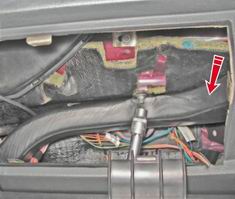10. Снимаем кран, вынимая его патрубок из уплотнителя, находящегося в перегородке моторного отсека (см. "Радиатор отопителя - замена"). Место соединения фланцев крана и радиатора уплотнено резиновой прокладкой. При этом из радиатора отопления может вытечь небольшое количество охлаждающей жидкости, для ее сбора надо подложить ветошь.