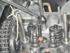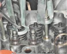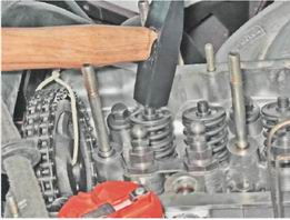 6. Сжав рассухаривателем пружины клапана, извлекаем из его проточки два сухаря.