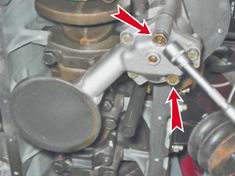 3. Торцовым ключом на 13 мм отворачиваем два болта крепления масляного насоса. Болты крепления насоса имеют разную длину.