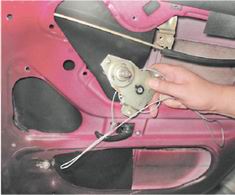 2. Установка механизма стеклоподъемника выполняется в обратной последовательности, не допуская схода троса с барабана механизма стеклоподъемника.