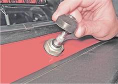 11. Торцовым ключом на 8 мм отворачиваем две гайки крепления мотор-редуктора к внутренней панели двери багажного отделения.