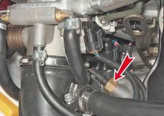 Датчик температуры охлаждающей ДТОЖ установлен в резьбовом отверстии патрубка системы охлаждения двигателя.