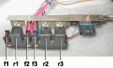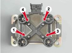 Предохранители и реле системы управления двигателем : fl - предохранитель цепи главного реле (7,5 A); f2 - предохранитель ЭБУ (7,5 A); f3 - предохранитель цепи электробензонасоса (15 A); rl - главное реле; r2 - реле топливного насоса; r3 - реле электровентилятора.Примечание Ha автомобилях с ЭБУ Ml5.4N и Январь-5.13 установлены предохранители f7 и f2 номиналом 75A. Катушка зажигания установлена с левой стороны блока цилиндров на кронштейне. Катушка представляет собой объединенные в один неразборный блок два высоковольтных трансформатора. Выводы вторичной обмотки одной катушки соединены высоковольтными проводами со свечами 1-го и 4-го цилиндров, другой - со свечами 2-го и 3-го цилиндров. Номера цилиндров, со свечами которых соединяются выводы катушки, нанесены рядом с выводами.