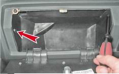 6. Вынимаем корпус вещевого ящика из панели приборов. 7. Отворачиваем четыре самореза крепления вещевой полки.