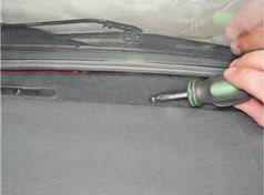 15. Короткой крестовой отверткой отворачиваем три самореза крепления вставки панели приборов (на фото показан саморез правого крепления вставки).