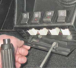 4. Поддев шлицевой отверткой, снимаем накладку панели радиоприемника.