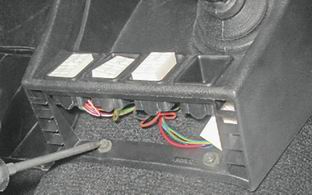 7. Сдвигаем панель назад и приподнимаем, выводя из отверстий панели колодки проводов и рычаг переключения передач.