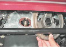 4. Специальным ключом на 38 мм отворачиваем гайку крепления шкива коленчатого вала.