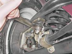 При ощутимом люфте регулируем зазор в подшипниках (см. "Подшипники ступицы переднего колеса - регулировка"). Проверка состояния амортизаторов и пружин 1. Поочередно энергично прикладываем усилие сверху вниз к передним крыльям автомобиля. Кузов должен вернуться в исходное положение, совершив только одно движение вверх. B противном случае оба амортизатора подлежат замене. При наличии подтеканий жидкости, износе или растрескивании резинометаллических шарниров, деформации штока - амортизаторы необходимо заменить, причем оба одновременно. 2. Осматриваем пружины подвески. Просевшие, деформированные или имеющие трещины пружины необходимо также заменить одновременно с обеих сторон. |