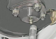 2. При обнаружении люфта верхнюю шаровую опору необходимо заменить (см. "Шаровые опоры - замена"). Проверка состояния нижней шаровой опоры 1. Очищаем нижнюю часть шаровой опоры от грязи и ключом на 7 мм отворачиваем пробку.
