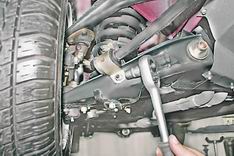 5. Убедившись, что выступ подушки находится в отверстии обоймы, окончательно заворачиваем гайки. Аналогично устанавливаем обойму стабилизатора с другой стороны. |