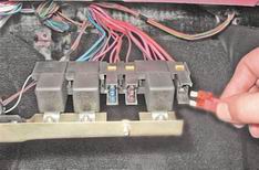 5. Неисправный предохранитель определяем по перегоревшей нити. 6. Исправный предохранитель устанавливаем в контактный разъем блока и, нажав пальцем руки, утапливаем его до упора. 7. Для замены реле торцовым ключом на 8 мм отворачиваем гайку его крепления.