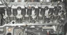 16. Отсоединяем от патрубков корпуса дроссельной заслонки шланг отвода охлаждающей жидкости и воздуховод (см. "Корпус дроссельной заслонки - снятие и установка"). 17. Отсоединяем от патрубка ресивера шланг вакуумного усилителя тормозов (см. "Ресивер - снятие и установка"). 18. Отсоединяем от трубок рампы шланги подвода и слива топлива (см. "Топливная рампа - снятие, установка и проверка форсунок"). 19. Торцовым ключом на 12 мм с удлинителем отворачиваем десять болтов внутреннего крепления головки к блоку цилиндров.