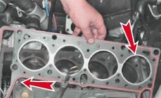 22. Снимаем прокладку с двух центрирующих втулок блока цилиндров.