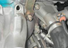 15. Изогнутым ключом на 13 мм или торцовым ключом с шарниром отворачиваем гайку заднего крепления выпускного коллектора.