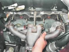 Точки креплений впускного трубопровода 14. Снимаем впускной трубопровод со шпилек головки блока цилиндров и отводим его в сторону.