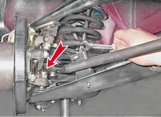 6. Приподнимая рычаг, запрессовываем палец нижней шаровой опоры и затягиваем самоконтрящуюся гайку. 7. Остальные детали устанавливаем в порядке, обратном их снятию. 8. Установив автомобиль на колеса, окончательно затягиваем гайки крепления нижнего рычага подвески к его оси и крепления обоймы подушки стабилизатора. 9. Аналогично заменяем вторую пружину. |