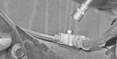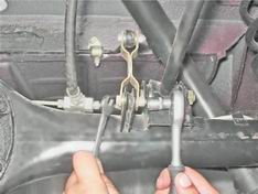 Вынув болт, отсоединяем нижний конец тяги от кронштейна, чтобы обеспечить возможность перемещения заднего моста. 3. Ключом на 10 мм отворачиваем гайку крепления тройника тормозной трубки, чтобы при смещении заднего моста вниз не повредить тормозной шланг. Ha автомобиле с большим пробегом предварительно обрабатываем это соединение проникающей смазкой.
