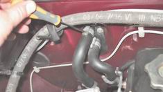 Радиатор отопителя - заменаДля выполнения работы потребуются две новые резиновые прокладки для крана отопителя и патрубка радиатора, два червячных хомута диаметром 16-23 мм и охлаждающая жидкость. Снятие 1. Подготавливаем автомобиль к выполнению операций (см. "Подготовка автомобиля к TO и ремонту"). Предупреждение Перед выполнением следующих операций рекомендуется под патрубки подложить ветошь. 2. B моторном отсеке отверткой ослабляем затяжку хомутов крепления шлангов подвода и отвода охлаждающей жидкости.