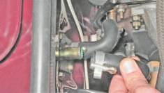 3. Снимаем шланги с патрубков радиатора и крана отопителя. При этом из отверстий патрубков и шлангов может вытечь небольшое количество охлаждающей жидкости.