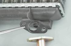 10. Снимаем патрубок. Место соединения фланцев патрубка и радиатора уплотнено резиновой прокладкой.