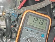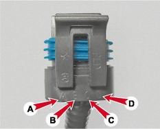 3. Подсоединяем "минусовой" щуп вольтметра к "массе" двигателя. 4. Включив зажигание, вольтметром измеряем напряжение на выводах A и D колодки жгута проводов.