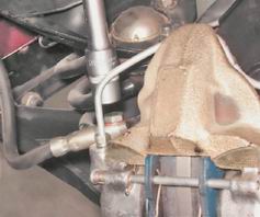 5. Для уменьшения потерь тормозной жидкости надеваем на конец трубки защитный колпачок (от штуцера прокачки тормозного цилиндра) и выводим наконечник шланга из кронштейна на кузове.
